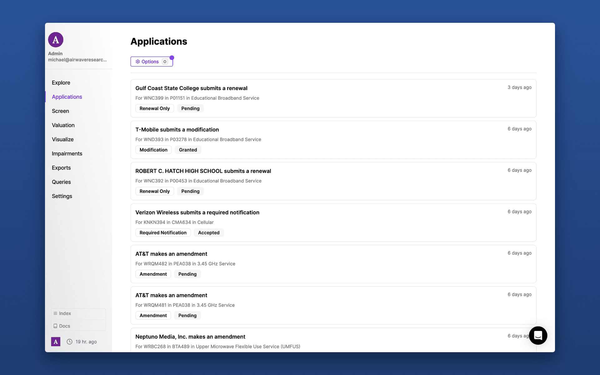 As we integrate our comprehensive license ownership data with the new Applications dataset, Airwave customers will gain access to spectrum insights that were nearly impossible to obtain before.