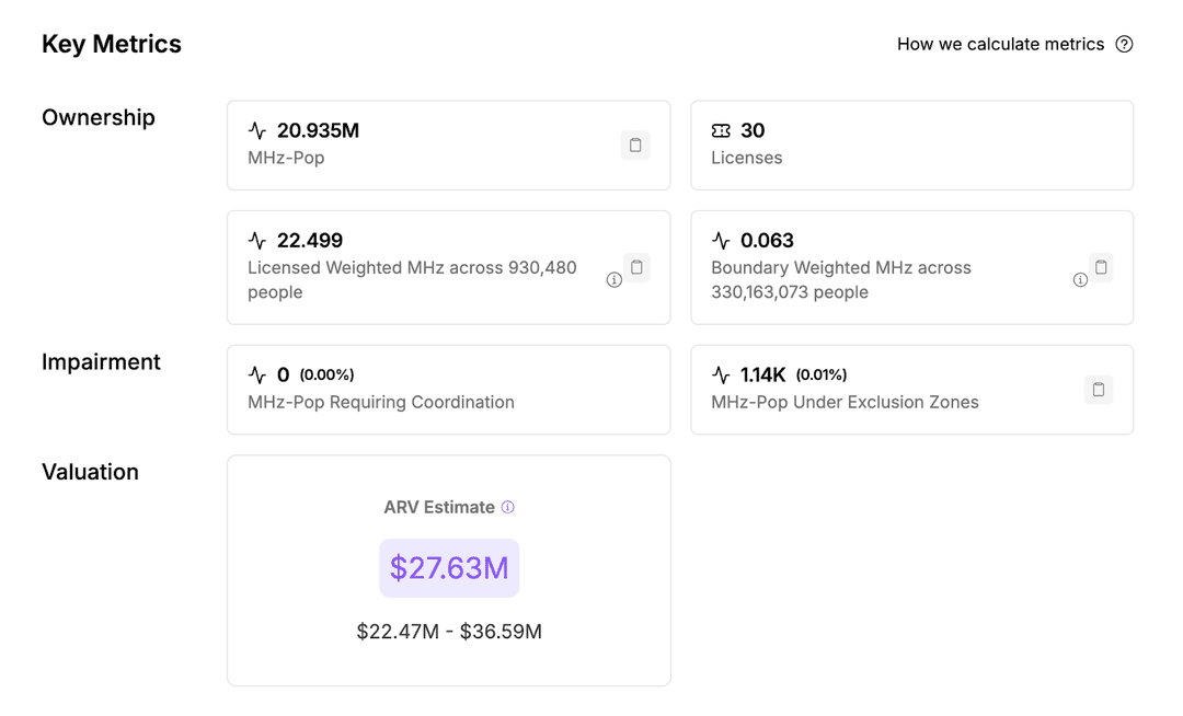 “Zestimate” is a registered trademark of Zillow, Inc. The ARV Estimate by Airwave Research is an independent tool for estimating spectrum license values and is not affiliated with or endorsed by Zillow, Inc. The reference to “Zestimate” is for comparative purposes only, to help readers understand the nature of our valuation tool within the context of the spectrum industry.